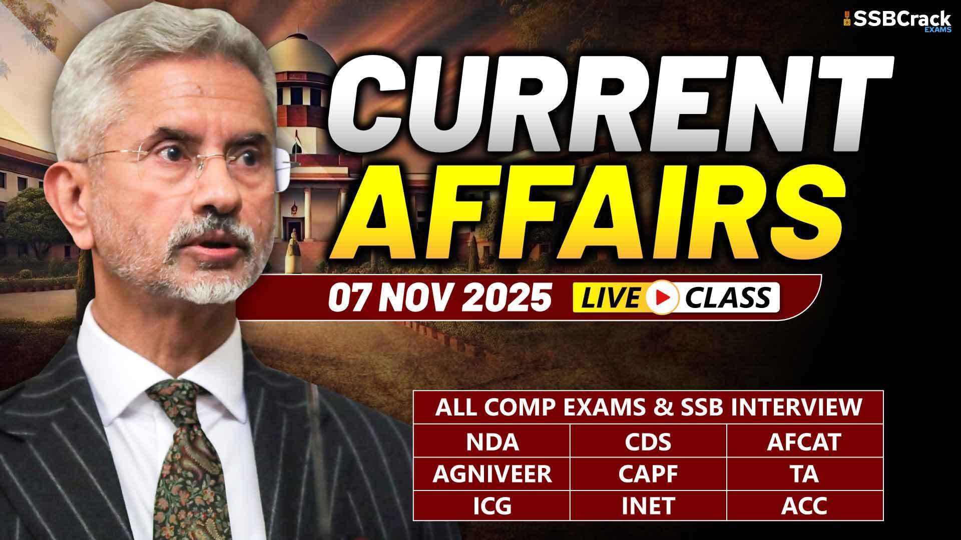 In Current Affairs for 07 November 2025, we will see the latest national and international current affairs news. These important current affairs will be beneficial for your upcoming NDA, CDS, CDS OTA, AFCAT, TA, Agniveer Army, Agniveer Navy, Agniveer Air Force, Women Military Police, INET, MNS, ACC exams, SCO, PCSL, CAPF, and SSB interviews, and direct entries for Army, Navy, and Air Force like SSC Tech, TGC, JAG, NCC, TES, 10+2 Cadet. Download a PDF file about current events at the end of this article. Let us now see the Current Affairs.