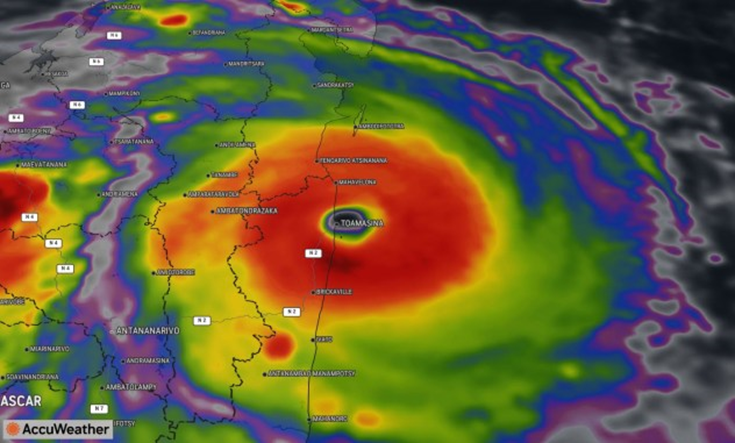 Explanation: The cyclone hit Toamasina, the main port city of Madagascar.