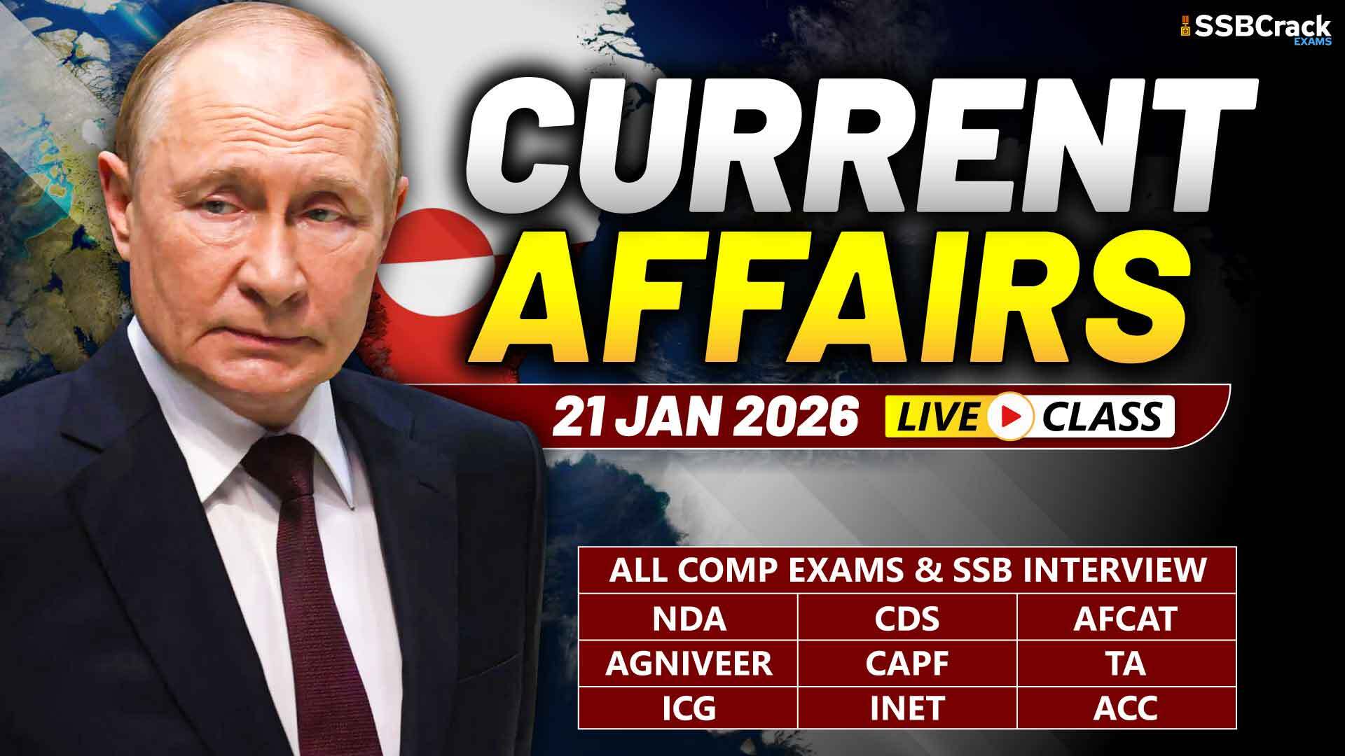 In Current Affairs for 21 January 2026, we will see the latest national and international current affairs news. These important current affairs will be beneficial for your upcoming NDA, CDS, CDS OTA, AFCAT, TA, Agniveer Army, Agniveer Navy, Agniveer Air Force, Women Military Police, INET, MNS, ACC exams, SCO, PCSL, CAPF, and SSB interviews, and direct entries for Army, Navy, and Air Force like SSC Tech, TGC, JAG, NCC, TES, 10+2 Cadet. Download a PDF file about current events at the end of this article. Let us now see the Current Affairs.