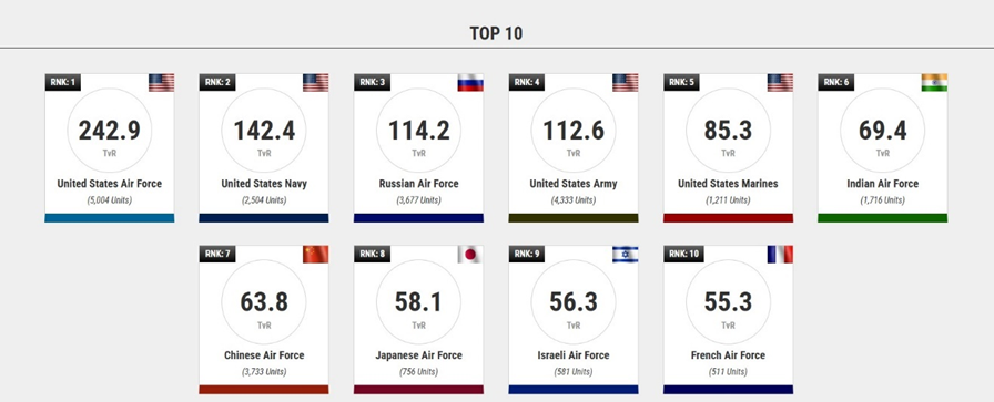 Globally, the United States Air Force (USAF) holds the top position, followed by Russia, while India leads in Asia. The WDMMA ranking system evaluates countries based on technology, aircraft strength, combat readiness, pilot training, and operational balance — factors that collectively determine the efficiency of a modern air force.