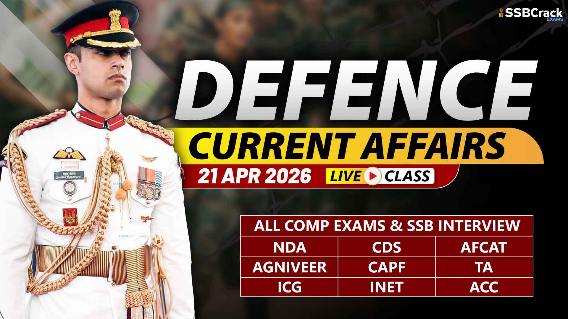 In Defence Current Affairs for 21 April 2026, we will see the latest national and international current affairs news. These important current affairs will be beneficial for your upcoming NDA, CDS, CDS OTA, AFCAT, TA, Agniveer Army, Agniveer Navy, Agniveer Air Force, Women Military Police, INET, MNS, ACC exams, SCO, PCSL, CAPF, and SSB interviews, and direct entries for Army, Navy, and Air Force like SSC Tech, TGC, JAG, NCC, TES, 10+2 Cadet. Download a PDF file about current events at the end of this article. Let us now see the Current Affairs.