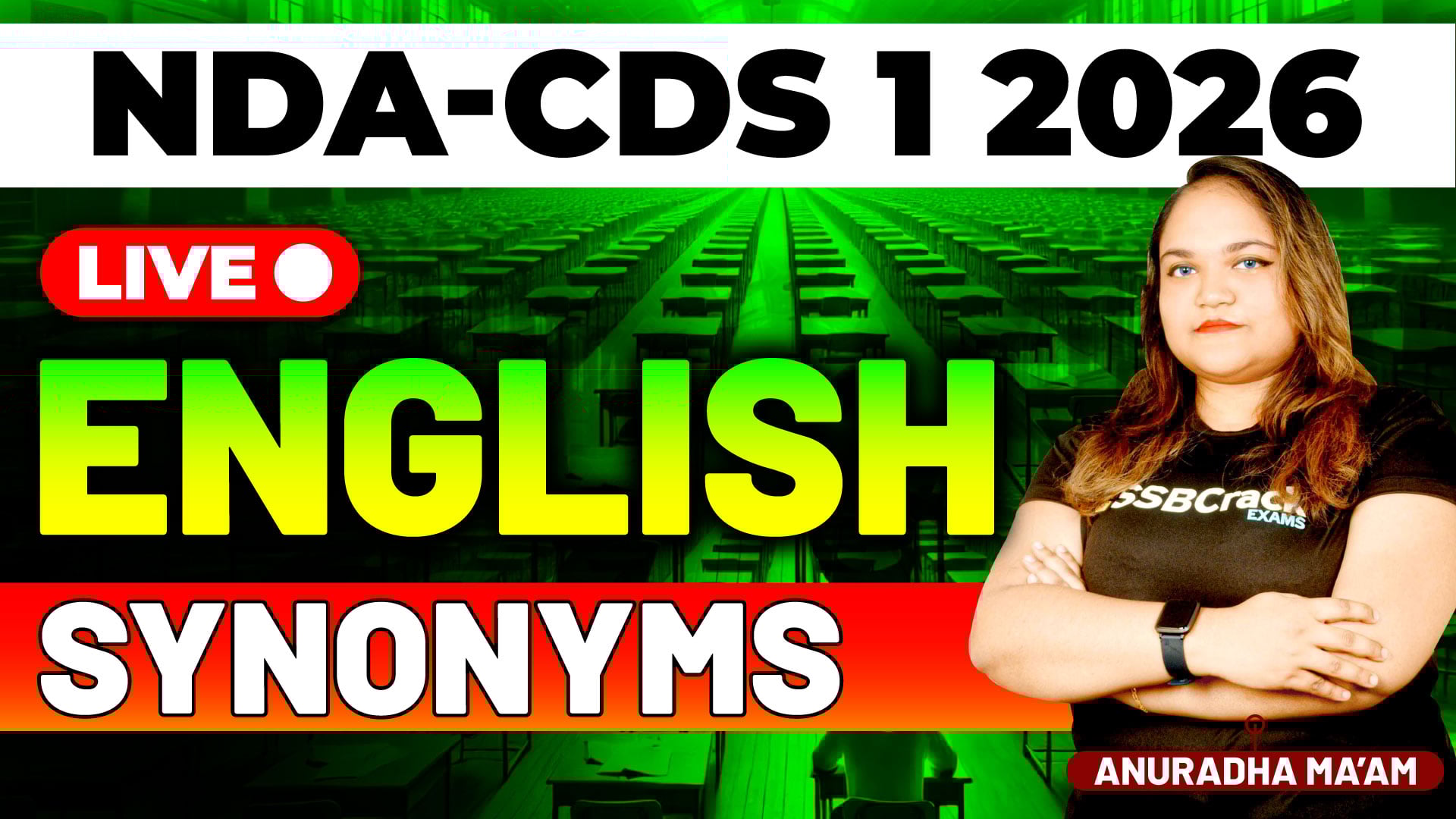 The Synonyms Live Class for NDA & CDS 1 2026 – Live Batch 2 helped aspirants strengthen their vocabulary and develop confidence in solving synonym-based MCQs. By focusing on meaning precision, elimination strategy, and consistent practice, students were equipped to approach synonym questions systematically and accurately.