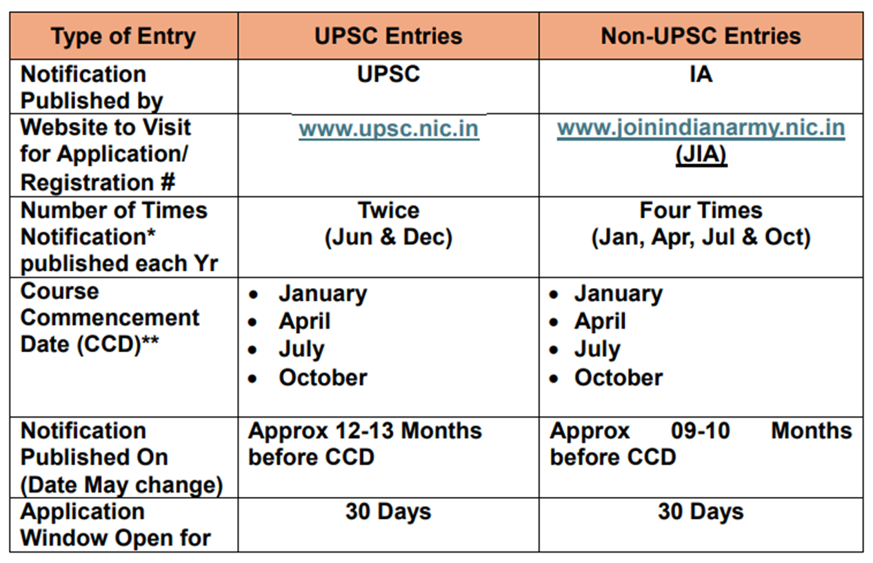 โขIndian Military Academy (IMA) or National Defence Academy (NDA)/other academies (for UPSC entries).